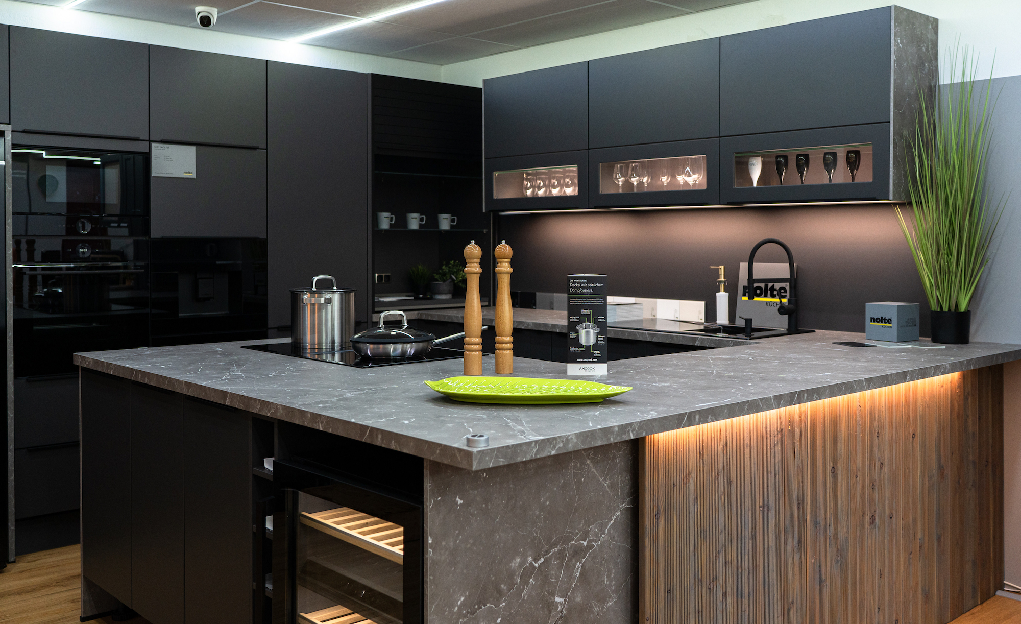 Tauchen Sie ein in unsere Welt der Küchen. Wir präsentieren Ihnen auf 140 m² fünf sorgfältig gestaltete Küchen, die Vielfalt und Individualität in den Vordergrund stellen.